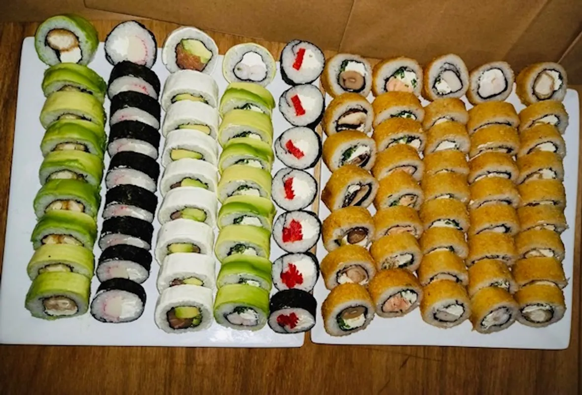 Champiñón, queso, cebollín (10) pzas fritas, Pollo apanado, queso, cebollín (10) pzas fritas, Salmón, queso, cebollín (10) pzas fritas, Kanikama, queso, cebollín (10) pzas fritas, Camarón, queso, cebollín (10) pzas fritas, Camarón, queso, cebollín (10) pzas env en palta, Pollo apanado, queso, cebollín (10) pzas env en palta, Salmón, palta, cebollín (10) pzas env queso, Kanikama, queso (10) pzas hosomaki, Pimentòn, queso (10) pzas hosomaki.